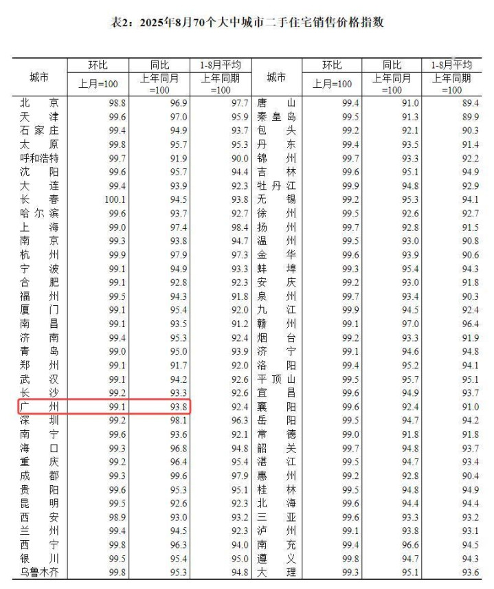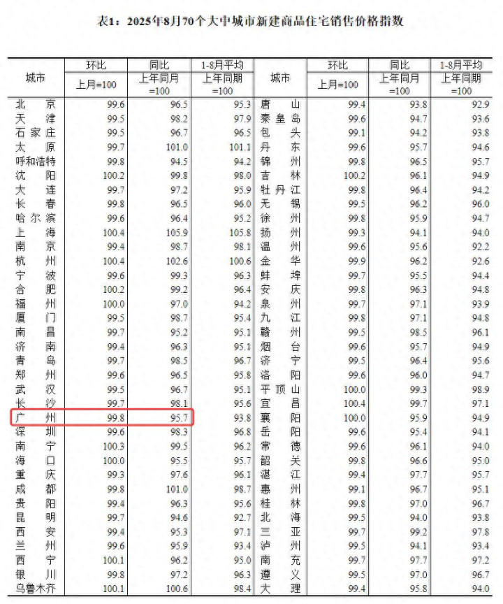 粤进深 严明会9月15日,国家统计局发布2025年8月份70个大中城市商品住宅销售价格变动情况。